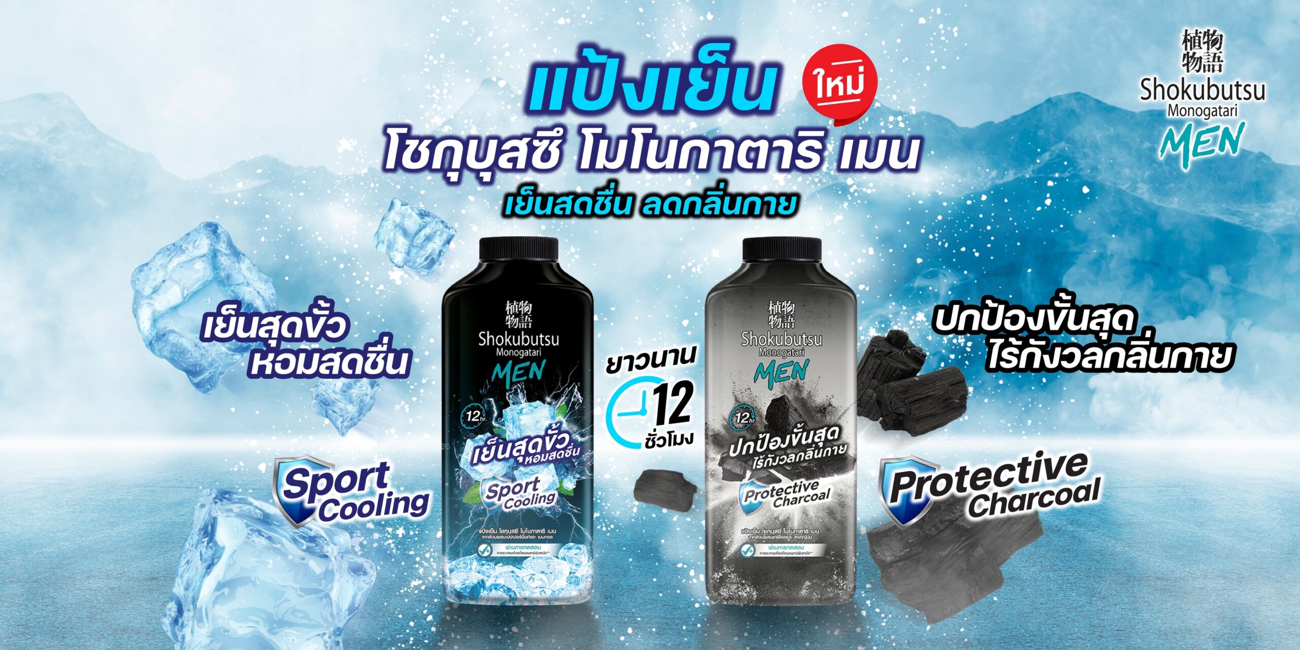 มาเย็นสดชื่น คลายร้อน กับ ใหม่ !!! แป้งเย็น โชกุบุสซึ โมโนกาตาริ เมน สูตร สปอร์ต คูลลิ่ง จากส่วนผสมของ “เปปเปอร์มิ้นท์” Peppermint Essential Oil Menthol ให้คุณรู้สึกเย็นสดชื่นทันที เพิ่มความมั่นใจด้วยกลิ่นหอมแบบคูล คูล ลดสาเหตุของกลิ่นกายให้คุณมั่นใจทุกครั้งที่ใช้ ผ่านการทดสอบการระคายเคืองโดยแพทย์ผิวหนัง